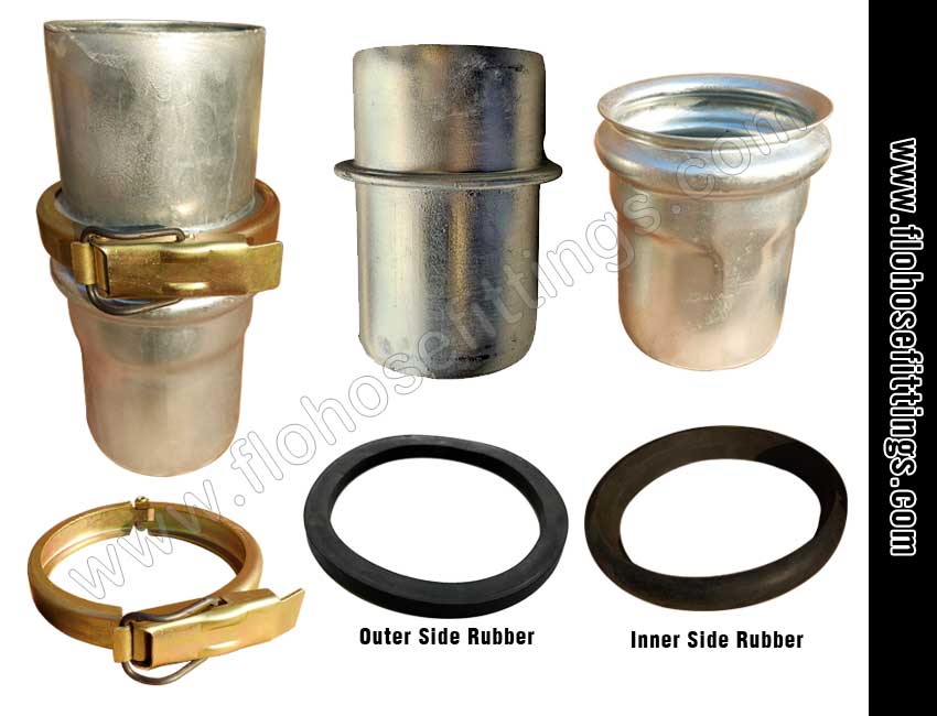 Ring Lock Couplings (Travis Type/Bush Hug Type) complete Set of Male / Female / Locking Clamp, Inner & Outer Rubber Ring, Galvanized | |